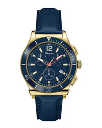 - About the brand: The Gancini, The Vara, and all the icons in-between. - Swiss Quartz Chronograph movement - Blue Leather strap - Stainless Steel bezel - Stainless Steel case - Anti-reflective sapphire crystal - Push-pull crown - Blue dial - Case: 44mm - Water-resistant up to 100 meters - Manufacturer's limited warranty - The Watch Size Guide - Our products are 100% genuine. In some cases we purchase merchandise from trusted independent suppliers and not directly from the brand owner. In all cases we stand by the authenticity of every product sold on our site.