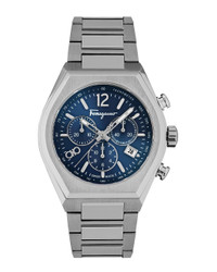 - Guaranteed for Christmas. Delivery restrictions apply. - See disclaimer. - About the brand: The Gancini, The Vara, and all the icons in-between. - Chronograph Date Quartz chronograph movement - Silver Stainless Steel bracelet - Deployant clasp - Stainless Steel bezel - Stainless Steel case - Sapphire crystal - Push-pull crown - Blue dial - Case: 42MM x 10.05mm - Bracelet/strap: 14mm wide x 6.5in long - Water-resistant up to 50 meters - Manufacturer's limited warranty - It is customary to treat most gemstones to achieve enhanced color and durability. Some of these treatments may not be permanent, and may require special care. - The Watch Size Guide - Our products are 100% genuine. In some cases we purchase merchandise from trusted independent suppliers and not directly from the brand owner. In all cases we stand by the authenticity of every product sold on our site.