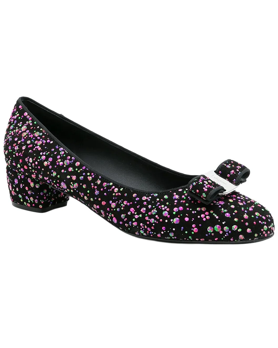 - About the brand: The Gancini, The Vara, and all the icons in-between. - Made in Italy - Vara Sequin Leather Pump in black leather - Slip-on styling - Leather sole - 3in heel - Our products are 100% genuine. In some cases we purchase merchandise from trusted independent suppliers and not directly from the brand owner. In all cases we stand by the authenticity of every product sold on our site.