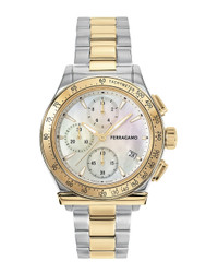 - About the brand: The Gancini, The Vara, and all the icons in-between. - Chronograph Date Quartz movement - Gold/Silver Stainless Steel bracelet - Deployant clasp - Stainless Steel bezel - Stainless Steel case - Sapphire crystal - Push-pull crown - White dial - Case: 38MM x 10.9mm - Bracelet/strap: 18mm wide x 6.6in long - Water-resistant up to 50 meters - Manufacturer's limited warranty - It is customary to treat most gemstones to achieve enhanced color and durability. Some of these treatments may not be permanent, and may require special care. - The Watch Size Guide - Our products are 100% genuine. In some cases we purchase merchandise from trusted independent suppliers and not directly from the brand owner. In all cases we stand by the authenticity of every product sold on our site.