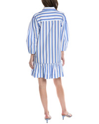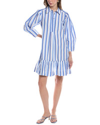 BLUE STRIPED COTTON MINI SHIRT DRESS