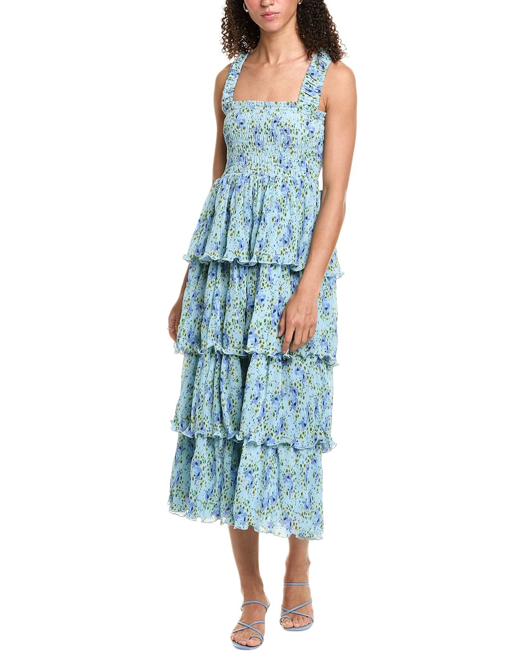 - Please note: Size selections are European. For US conversions, please reference the size chart. - Color/pattern: ice water - Approximately 51in from shoulder to hem - Model is 5'9.5 and is wearing a size 36. Measurements may vary slightly by size. - Design details: elastic shoulder straps, smocked bodice and tiered pleated skirt - Slip-on styling - 100% recycled polyester - Machine wash - Imported - Our products are 100% genuine. In some cases we purchase merchandise from trusted independent suppliers and not directly from the brand owner. In all cases we stand by the authenticity of every product sold on our site.
