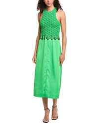 - Please note: Size selections are European. For US conversions, please reference the size chart. - Color/pattern: classic green - Approximately 52in from shoulder to hem - Model is 5'9.5 and is wearing a size 36. Measurements may vary slightly by size. - Design details: smocked design top, beaded fringe at waist and split front hem - Center back zipper closure - 70% recycled polyester, 30% polyester - Hand wash - Imported - Our products are 100% genuine. In some cases we purchase merchandise from trusted independent suppliers and not directly from the brand owner. In all cases we stand by the authenticity of every product sold on our site.