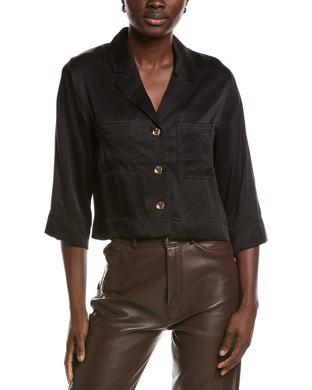 - Please note: Size selections are European. For US conversions, please reference the size chart. - Color/pattern: black - Approximately 20in from shoulder to hem - Model is 5'10 and is wearing a size 34. Measurements may vary slightly by size. - Design details: dual chest pockets - Button front - 50% viscose, 50% cupro - Machine wash - Imported - Our products are 100% genuine. In some cases we purchase merchandise from trusted independent suppliers and not directly from the brand owner. In all cases we stand by the authenticity of every product sold on our site.