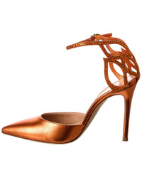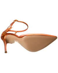 - About the brand: Effortless and wearable Italian chic. - Please note: Size selections are European. For US conversions, please reference size chart. - Made in Italy - Crystal Fleur 105 Leather Pump in orange leather and gold-tone hardware with logo buckle and rhinestone embellishments - Adjustable ankle strap with buckle closure - Lightly padded leather insole - Smooth leather sole - 4.5in heel - Please note: All measurements are approximate and were taken from a size 37; slight variations may occur. - Our products are 100% genuine. In some cases we purchase merchandise from trusted independent suppliers and not directly from the brand owner. In all cases we stand by the authenticity of every product sold on our site.