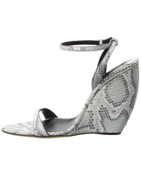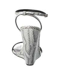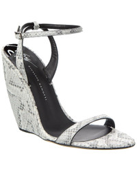 - About the brand: Glamourous & creative footwear and accessories with edge. - Please note: Size selections are European. For US conversions, please reference size chart. - Based on feedback from Members, this brand typically runs small. We suggest sizing up a half size for most styles. - Made in Italy - Clandestino 105 Snakeskin Wedge Sandal in white snakeskin and silver-tone hardware - Adjustable ankle strap with buckle closure - Lightly padded leather insole - Smooth leather sole - 4.5in heel - Please note: All measurements are approximate and were taken from a size 37; slight variations may occur.