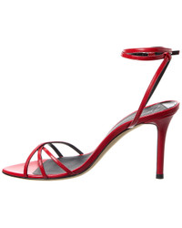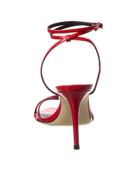- About the brand: Glamourous & creative footwear and accessories with edge. - Please note: Size selections are European. For US conversions, please reference size chart. - Based on feedback from Members, this brand typically runs small. We suggest sizing up a half size for most styles. - Made in Italy - Clandestino 90 Leather Sandal in red leather and silver-tone hardware with strappy design - Adjustable ankle strap with buckle closure - Lightly padded leather insole - Smooth leather sole - 3.5in heel - Please note: All measurements are approximate and were taken from a size 37; slight variations may occur.