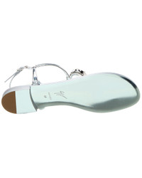 - About the brand: Glamourous & creative footwear and accessories with edge. - Please note: Size selections are European. For US conversions, please reference size chart. - Based on feedback from Members, this brand typically runs small. We suggest sizing up a half size for most styles. - Made in Italy - Rock Sandal in silver synthetic and silver-tone hardware with gem embellishment - Adjustable ankle strap with buckle closure - Smooth leather insole - Smooth leather sole