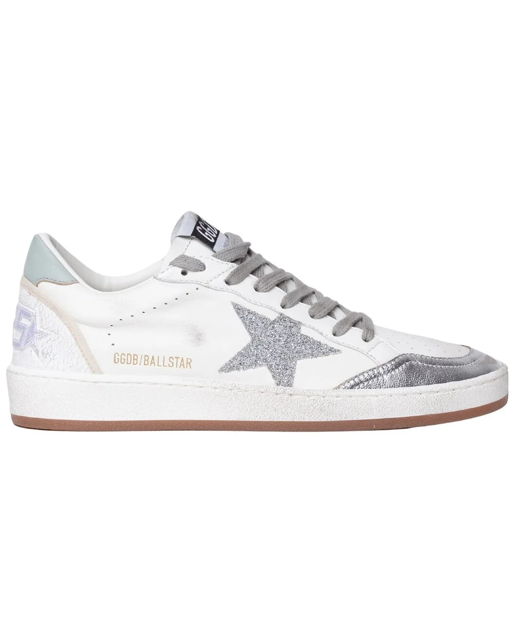 - About the brand: The Golden Goose Manifesto is: lived-in, perfect imperfection. Iconic distressed sneakers and unique street wear rooted in tradition with worldwide inspirations - from Venice to LA. - Ball Star Leather Sneaker in white, silver, aqua gray/, and orchid leather - Lace-up closure - Moderately padded footbed - Rubber sole - Made in Italy - Our products are 100% genuine. In some cases we purchase merchandise from trusted independent suppliers and not directly from the brand owner. In all cases we stand by the authenticity of every product sold on our site.