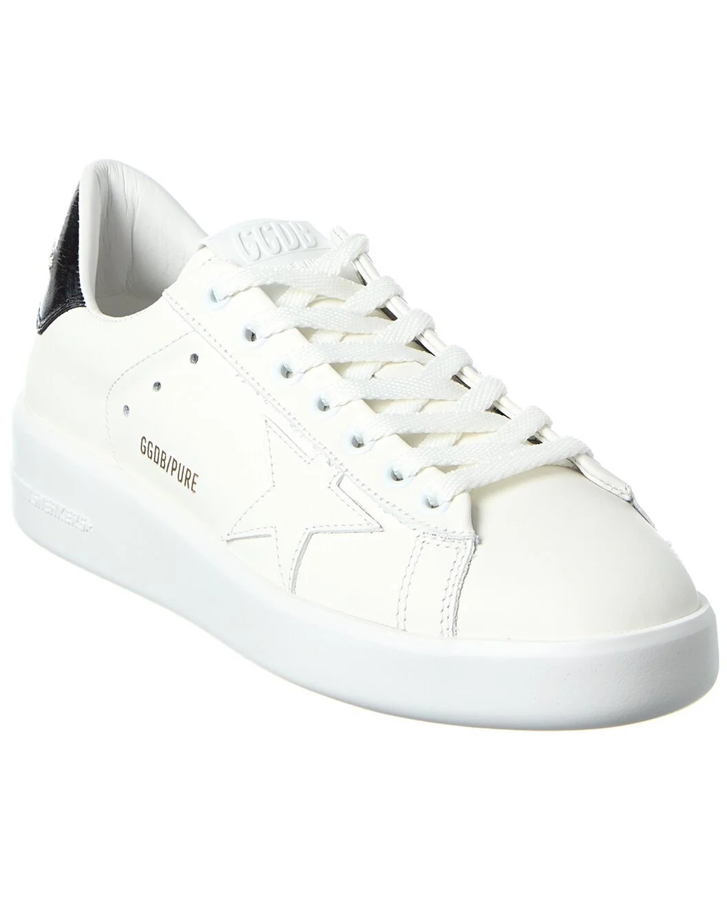- About the brand: The Golden Goose Manifesto is: lived-in, perfect imperfection. Iconic distressed sneakers and unique street wear rooted in tradition with worldwide inspirations - from Venice to LA. - Please note: Size selections are European. For US conversions, please reference size chart. - Made in Italy - Pure Star Leather Sneaker in optic white/black leather - Lace-up closure - Lightly padded leather insole - Rubber sole with traction - Our products are 100% genuine. In some cases we purchase merchandise from trusted independent suppliers and not directly from the brand owner. In all cases we stand by the authenticity of every product sold on our site.
