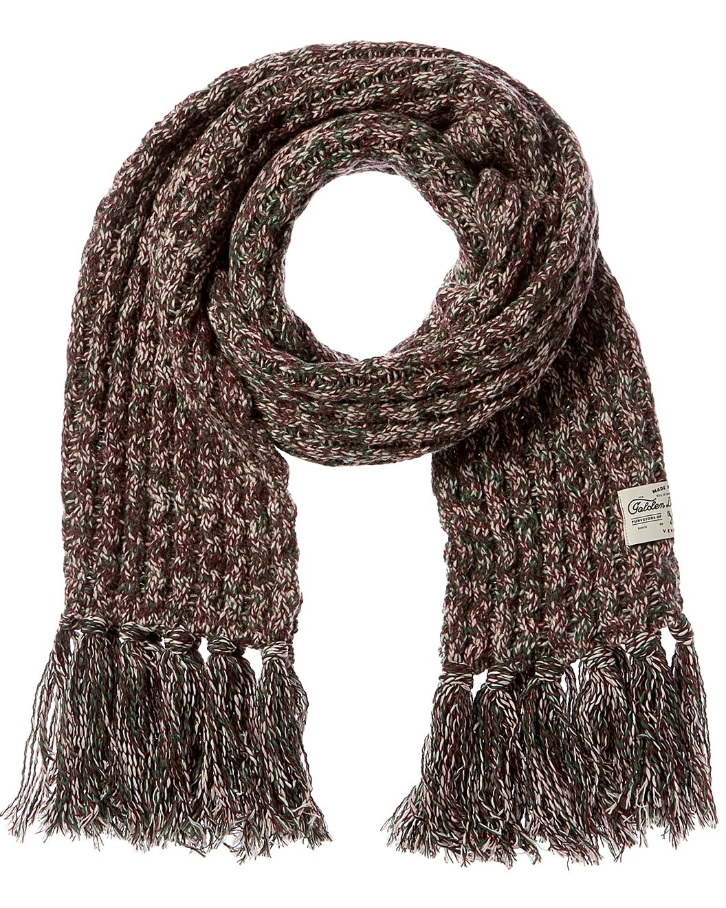 - About the brand: The Golden Goose Manifesto is: lived-in, perfect imperfection. Iconic distressed sneakers and unique street wear rooted in tradition with worldwide inspirations - from Venice to LA. - Ribbed Knit Wool-Blend Scarf in multicolor with 5in fringe at both ends - Measures 90in long x 12in wide - 80% wool, 20% polyamide - Hand wash - Made in Italy - Please note: All measurements were taken by hand and are approximate; slight variations may occur. - Our products are 100% genuine. In some cases we purchase merchandise from trusted independent suppliers and not directly from the brand owner. In all cases we stand by the authenticity of every product sold on our site.