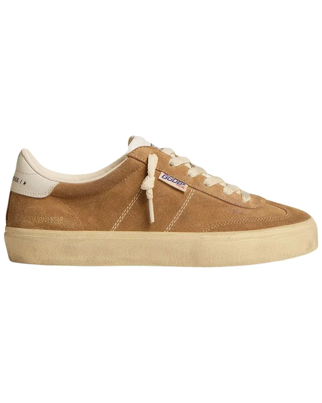 - About the brand: The Golden Goose Manifesto is: lived-in, perfect imperfection. Iconic distressed sneakers and unique street wear rooted in tradition with worldwide inspirations - from Venice to LA. - Soul Star Suede Sneaker in tobacco/white/milk suede - Lace-up closure - Moderately padded footbed - Rubber sole - Made in Italy - Our products are 100% genuine. In some cases we purchase merchandise from trusted independent suppliers and not directly from the brand owner. In all cases we stand by the authenticity of every product sold on our site.