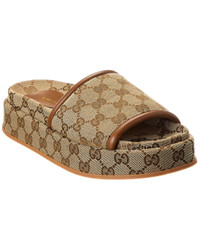- About the brand: Eclectic and coveted. Italian luxury redefined. - Please note: Size selections are European. For US conversions, please reference size chart. - Based on feedback from Members, this item typically runs large. We suggest sizing down. - Made in Italy - GG Canvas & Leather Platform Slide in brown GG canvas and leather - Smooth insole - Man-made sole - 1.5in platform - Please note: All measurements are approximate and were taken from a size 37; slight variations may occur. - Our products are 100% genuine. In some cases we purchase merchandise from trusted independent suppliers and not directly from the brand owner. In all cases we stand by the authenticity of every product sold on our site.