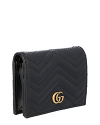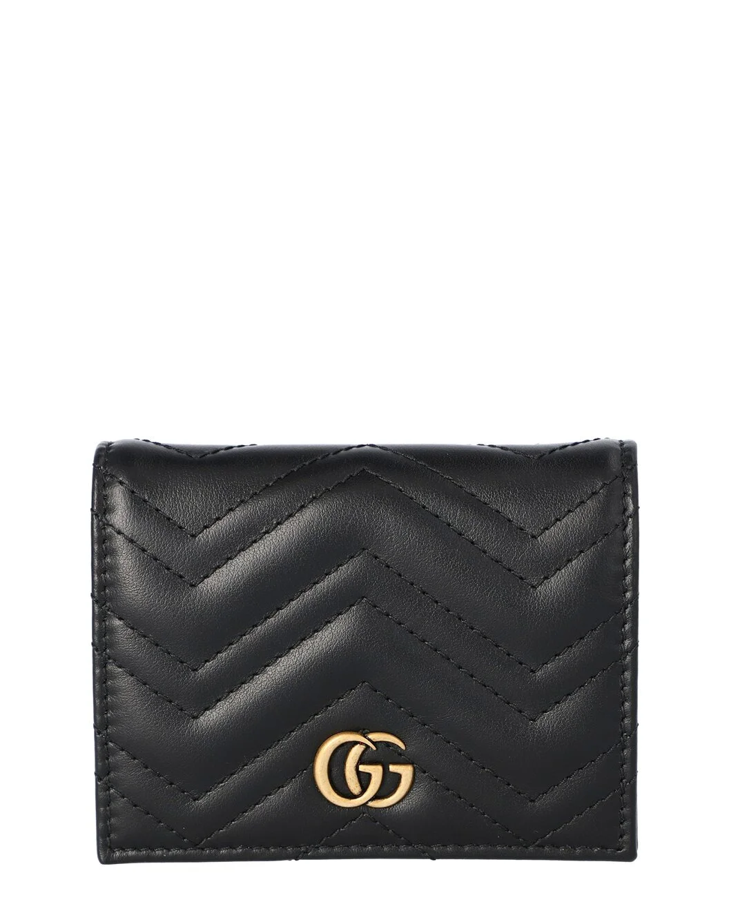 - About the brand: Eclectic and coveted. Italian luxury redefined. - Made in Italy - GG Marmont Leather Card Case in black leather and gold-tone hardware with Black matelasse chevron leather with GG on the back - Interior design details: Five card slots, two flat pockets, one zip pocket, one bill compartment - Measures 4.3in wide x 3.3in high x 1.2in deep - Snap closure - Please note: All measurements were taken by hand and are approximate; slight variations may occur. - Our products are 100% genuine. In some cases we purchase merchandise from trusted independent suppliers and not directly from the brand owner. In all cases we stand by the authenticity of every product sold on our site.