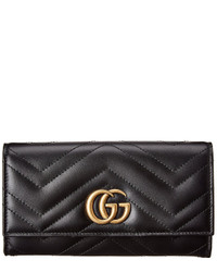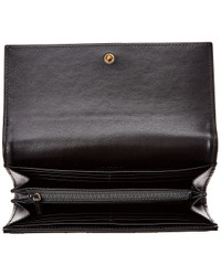 - About the brand: Eclectic and coveted. Italian luxury redefined. - Made in Italy - Color/material: black leather - Exterior design details: light fine gold hardware, interlocking G logo - Interior design details: leather and fabric lining, interior pockets, card slots, bill compartments - Measures 7.5in wide x 4in high x 1.5in deep - Fold-over flap with snap closure - Please note: All measurements were taken by hand and are approximate; slight variations may occur. - Our products are 100% genuine. In some cases we purchase merchandise from trusted independent suppliers and not directly from the brand owner. In all cases we stand by the authenticity of every product sold on our site.