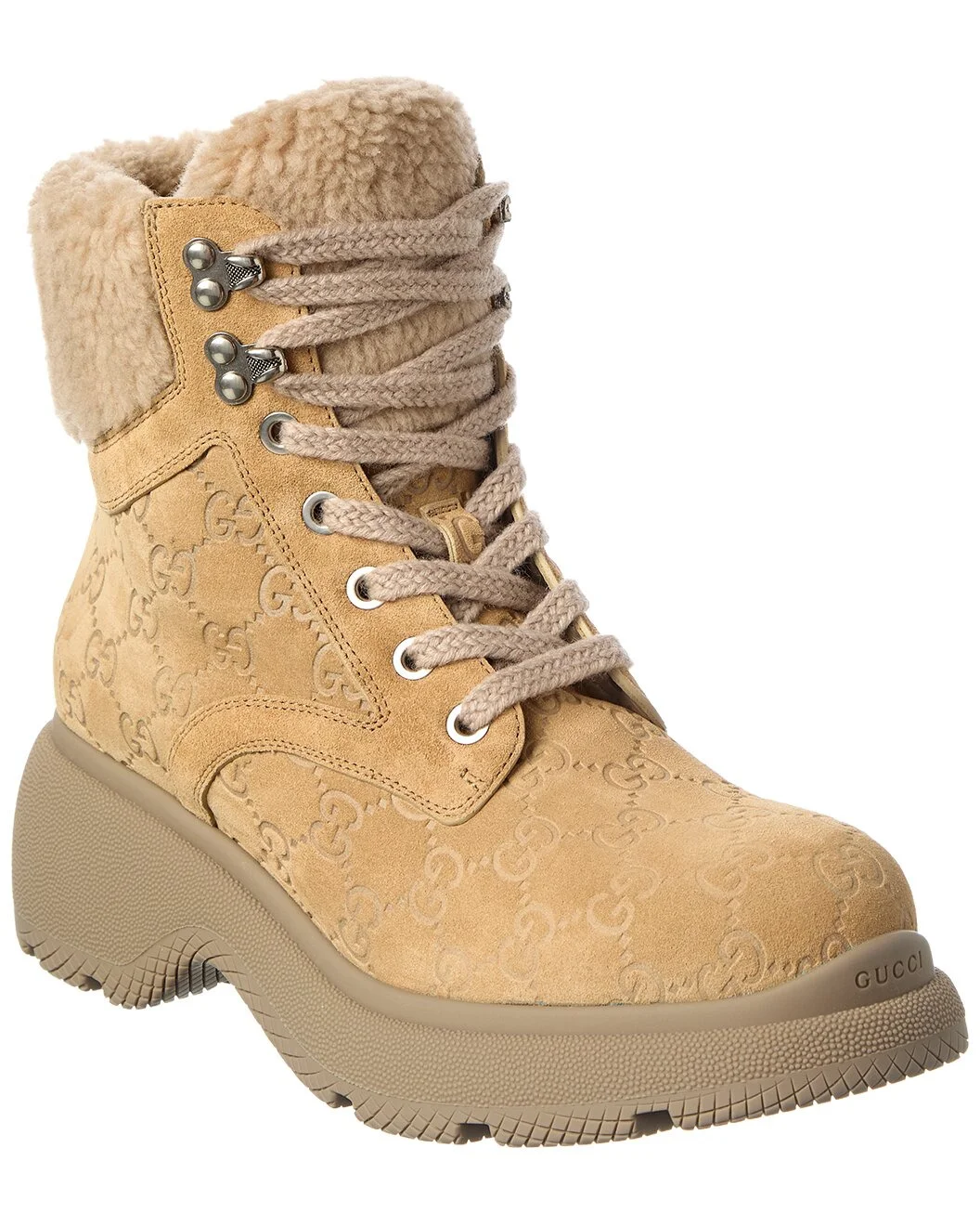 - About the brand: Eclectic and coveted. Italian luxury redefined. - Please note: Size selections are European. For US conversions, please reference size chart. - Based on feedback from Members, this item typically runs large. We suggest sizing down. - Made in Italy - GG Suede & Wool Bootie in brown suede and wool and dark silver hardware with horsebit detail - Lace-up closure - Wool lining - Rubber lug sole - 2in heel - 1in platform - 5in shaft - 11in boot circumference - Please note: All measurements are approximate and were taken from a size 36; slight variations may occur. - The Boot Size Guide - Our products are 100% genuine. In some cases we purchase merchandise from trusted independent suppliers and not directly from the brand owner. In all cases we stand by the authenticity of every product sold on our site.
