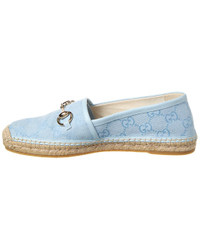 - About the brand: Eclectic and coveted. Italian luxury redefined. - Please note: Size selections are European. For US conversions, please reference size chart. - Based on feedback from Members, this item typically runs large. We suggest sizing down. - Made in Spain - Horsebit Canvas Espadrille in blue GG canvas and leather and light fine gold hardware with horsebit detail - Jute insole - Man-made sole - Our products are 100% genuine. In some cases we purchase merchandise from trusted independent suppliers and not directly from the brand owner. In all cases we stand by the authenticity of every product sold on our site.
