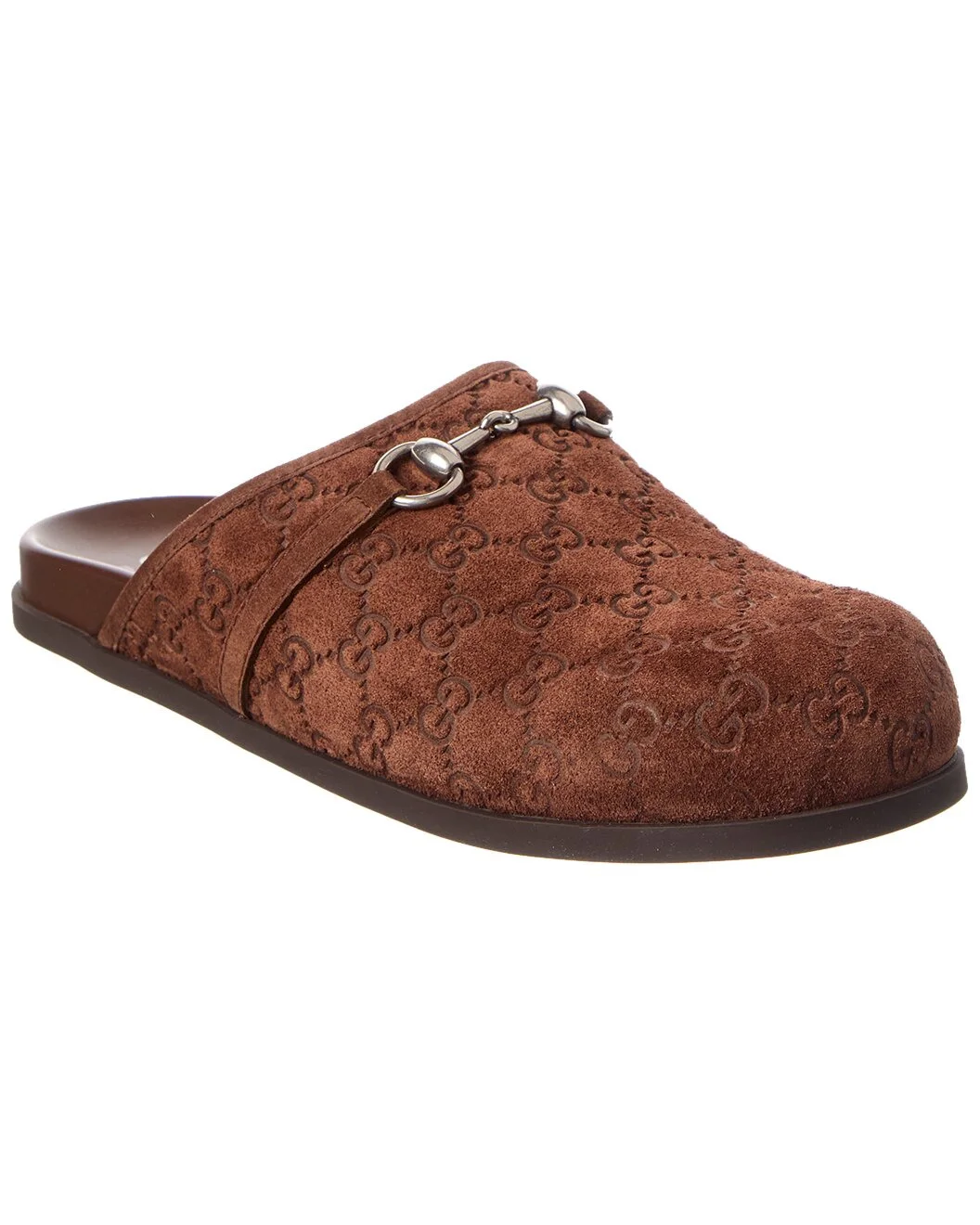 - About the brand: Eclectic and coveted. Italian luxury redefined. - Please note: Size selections are UK. For US conversions, please reference size chart. - Made in Italy - Horsebit GG Suede Mule in brown GG suede and dark silver hardware with horsebit detail - Smooth leather insole - Rubber sole with traction - Our products are 100% genuine. In some cases we purchase merchandise from trusted independent suppliers and not directly from the brand owner. In all cases we stand by the authenticity of every product sold on our site.