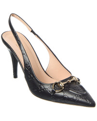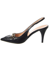 - About the brand: Eclectic and coveted. Italian luxury redefined. - Please note: Size selections are European. For US conversions, please reference size chart. - Made in Italy - Horsebit Leather Slingback Pump in black GG leather and light fine gold hardware with horsebit accent - Lightly padded leather insole - Smooth leather sole - 3.5in heel - Please note: All measurements are approximate and were taken from a size 37; slight variations may occur. - Our products are 100% genuine. In some cases we purchase merchandise from trusted independent suppliers and not directly from the brand owner. In all cases we stand by the authenticity of every product sold on our site.