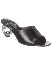 - About the brand: Eclectic and coveted. Italian luxury redefined. - Please note: Size selections are European. For US conversions, please reference size chart. - Made in Italy - Interlocking G Leather Sandal in black leather and dark silver hardware with interlocking G logo heel - Lightly padded leather insole - Smooth leather sole - 2.5in heel - Please note: All measurements are approximate and were taken from a size 37; slight variations may occur. - Our products are 100% genuine. In some cases we purchase merchandise from trusted independent suppliers and not directly from the brand owner. In all cases we stand by the authenticity of every product sold on our site.