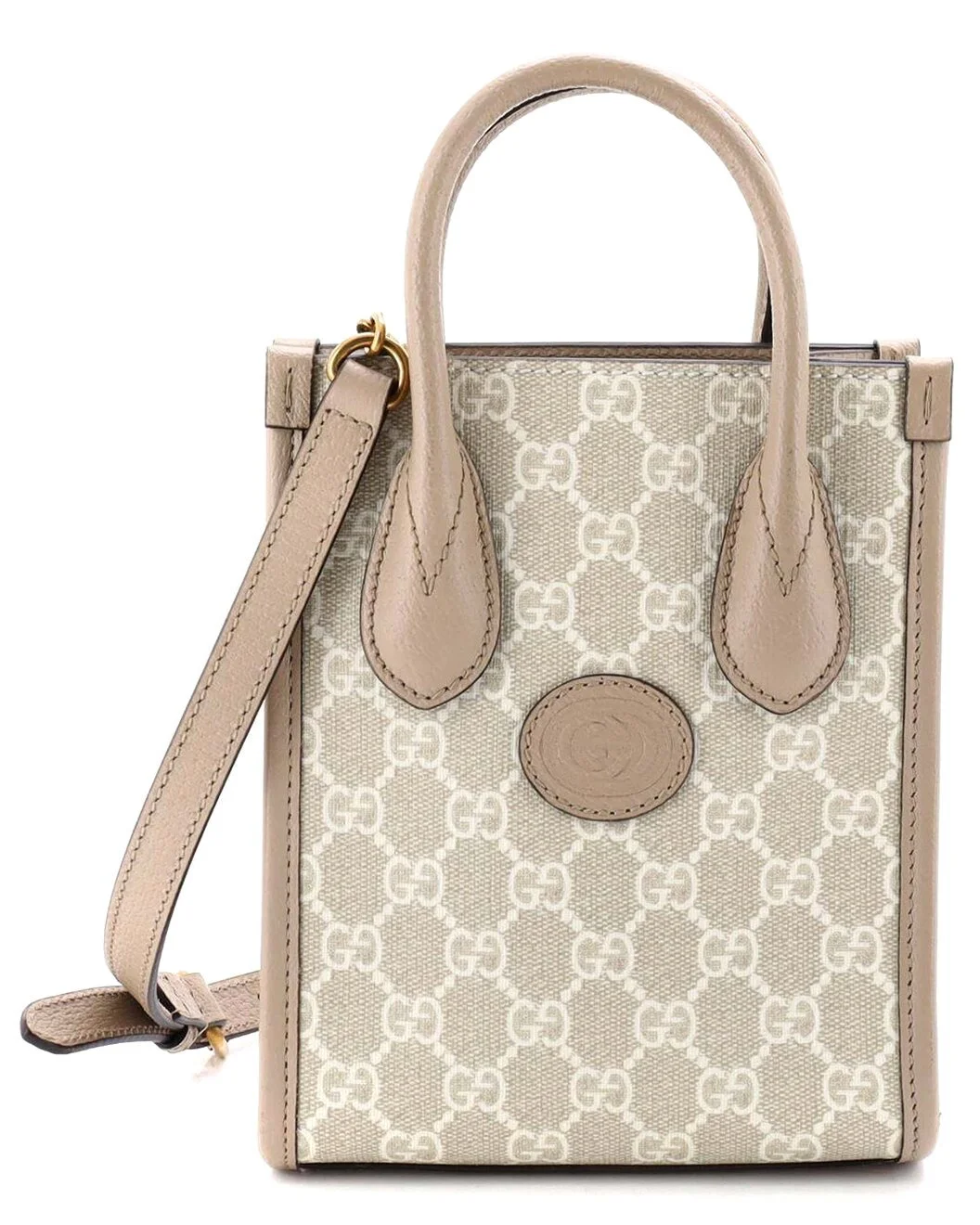 - About the brand: Eclectic and coveted. Italian luxury redefined. - This is an authentic, pre-loved piece. This item is in excellent condition, but may show slight signs of wear. This item shows unused or used once, but as good as new. no sign of wear. - For more information on condition, please see our condition guide at the bottom - Interlocking G Patch Tote GG Coated Canvas Mini in Beige Coated/Waterproof Canvas - Measurements: 5.98in long x 2.48in wide x 7.99in high - Please note: All measurements were taken by hand and are approximate; slight variations may occur. - The Pre-Loved Condition Guide - Our products are 100% genuine. In some cases we purchase merchandise from trusted independent suppliers and not directly from the brand owner. In all cases we stand by the authenticity of every product sold on our site.