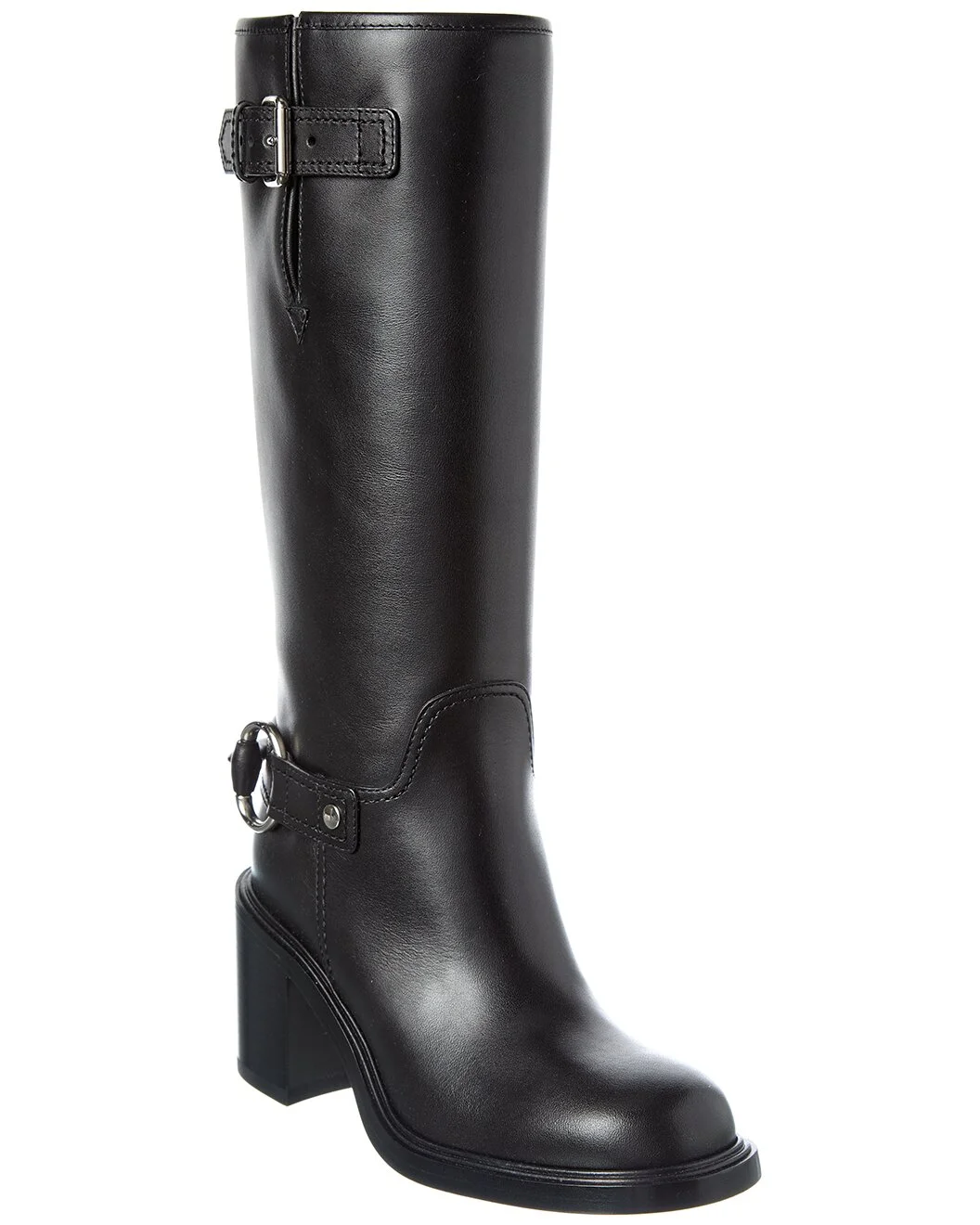- About the brand: Eclectic and coveted. Italian luxury redefined. - Based on feedback from Members, this item typically runs small. We suggest sizing up. - Please note: Size selections are European. For US conversions, please reference size chart. - Made in Italy - Mid-Heel Leather Boot in black leather and dark silver hardware with buckle accents - Lightly padded leather insole - Smooth leather sole - 2.7in heel - 14in shaft - 12in boot circumference - Please note: All measurements are approximate and were taken from a size 37; slight variations may occur. - Our products are 100% genuine. In some cases we purchase merchandise from trusted independent suppliers and not directly from the brand owner. In all cases we stand by the authenticity of every product sold on our site.