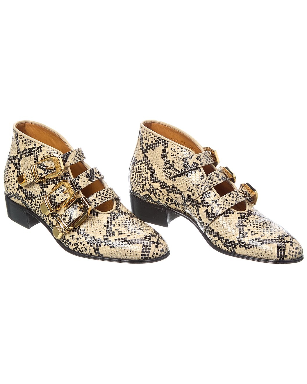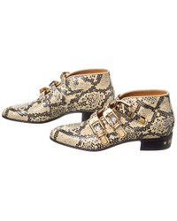 - This is an authentic, pre-loved piece. - This item shows worn soles. - About the brand: Eclectic and coveted. Italian luxury redefined. - Please note: Size selections are European. For US conversions, please reference size chart. - Based on feedback from Members, this item typically runs large. We suggest sizing down. - Made in Italy - Python-Embossed Leather Bootie in natural python-embossed leather and light fine gold hardware with printed heel - Buckle closure - Lightly padded leather insole - Smooth leather sole - 1.5in heel - 3.5in shaft - 9in boot circumference - Please note: All measurements are approximate and were taken from a size 37; slight variations may occur. - The Boot Size Guide - Our products are 100% genuine. In some cases we purchase merchandise from trusted independent suppliers and not directly from the brand owner. In all cases we stand by the authenticity of every product sold on our site.