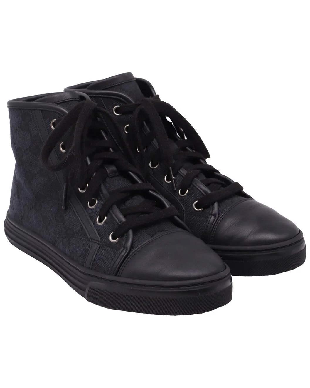 - About the brand: Eclectic and coveted. Italian luxury redefined. - This is an authentic, pre-loved piece. This item is in very good condition and shows light signs of wear. This item shows lightly used but very well maintained, may show minor signs of wear, scratches , worn corners, minor interior wear. - For more information on condition, please see our condition guide at the bottom - Color/material: black canvas - Design details: Step up your streetwear game with Gucci GG Monogram High-Top Sneakers in black canvas, featuring the iconic GG pattern for instant luxury appeal. The high-top design offers both style and ankle support, making them perfect for casual days with a designer edge. Styling tip: Wear them with slim black jeans and an oversized graphic tee for effortless urban cool, or pair with a tailored blazer and midi skirt to mix sporty and sophisticated elements. - 0.98in heel - 9.44in insole length - Please note: All measurements were taken by hand and are approximate; slight variations may occur. - Available only in Women's size EU 36 - The Pre-Loved Condition Guide - Our products are 100% genuine. In some cases we purchase merchandise from trusted independent suppliers and not directly from the brand owner. In all cases we stand by the authenticity of every product sold on our site.