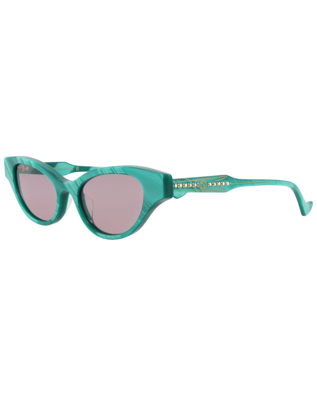 - About the brand: Eclectic and coveted. Italian luxury redefined. - Frame shape: cat eye - Frame color: shiny solid green natural mother of pearl - Lens color: solid violet tinted - These frames flatter those with an oval, round, diamond, triangle or oblong shaped face - Logo at temple arm - Lens: 51mm wide - Bridge: 18mm wide - Arms: 140mm long - Case included; case size and color may vary - Made in Italy - Model #: GG1298S-30013901-003 - WARNING: - CA Residents - Prop 65 - The Eyewear Size Guide - Our products are 100% genuine. In some cases we purchase merchandise from trusted independent suppliers and not directly from the brand owner. In all cases we stand by the authenticity of every product sold on our site.
