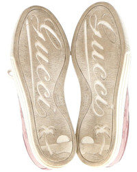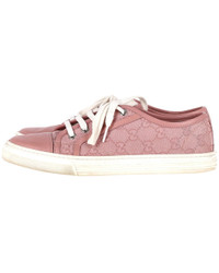 - About the brand: Eclectic and coveted. Italian luxury redefined. - This is an authentic, pre-loved piece. This item is in very good condition and shows light signs of wear. This item shows lightly used but very well maintained, may show minor signs of wear, scratches , worn corners, minor interior wear. - For more information on condition, please see our condition guide at the bottom - Color/material: pink leather - Design details: These Gucci sneakers are simple yet stylish. They've been crafted from soft pink GG canvas as well as leather and designed with simple lace-ups. Set on rubber soles, these sneakers are just perfect to ace one's casual style. - Accompanied by box and dust bag - 1in heel - 10.6in insole length - The Pre-Loved Condition Guide - Our products are 100% genuine. In some cases we purchase merchandise from trusted independent suppliers and not directly from the brand owner. In all cases we stand by the authenticity of every product sold on our site.