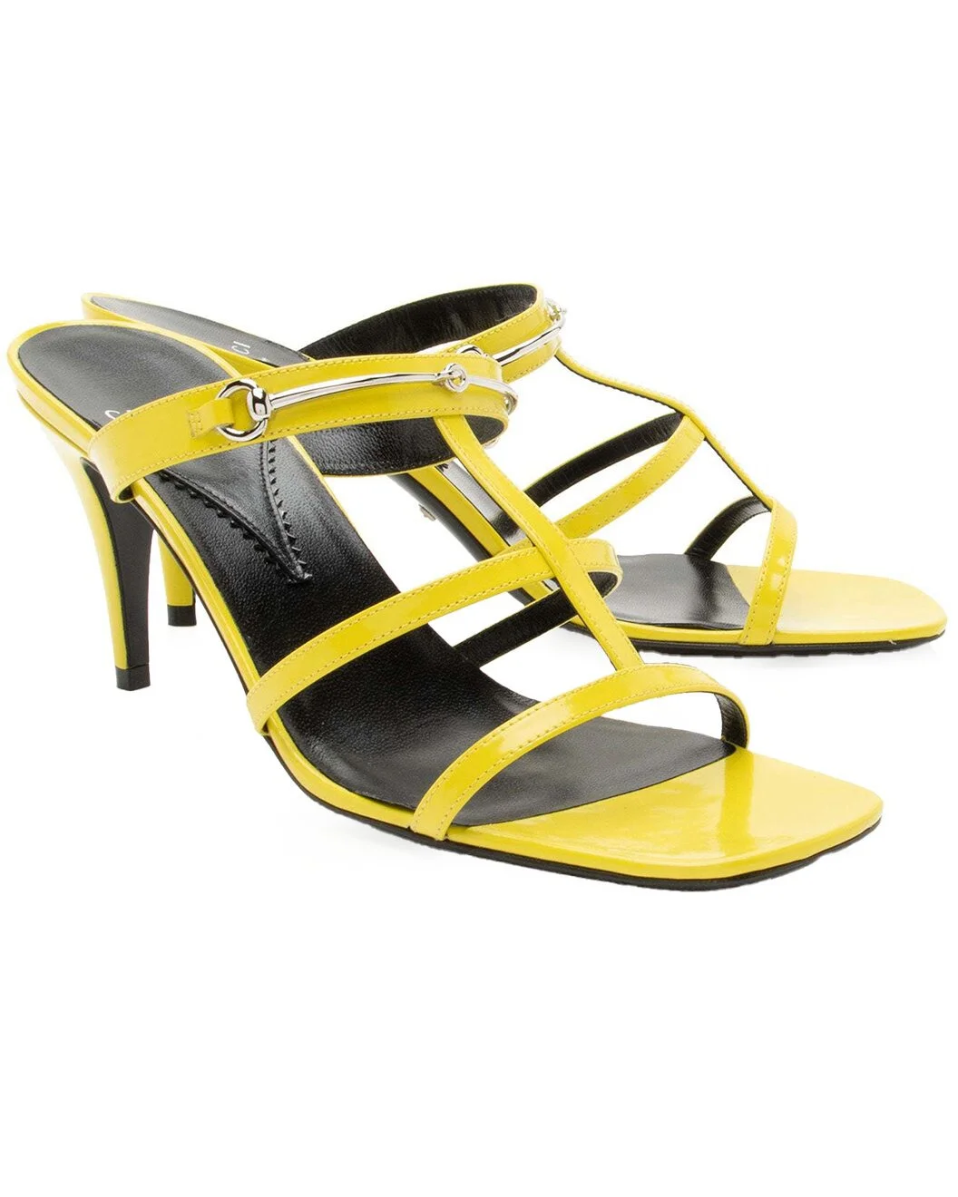 - About the brand: Eclectic and coveted. Italian luxury redefined. - This is an authentic, pre-loved piece. This item is in excellent condition, but may show slight signs of wear. This item shows unused or used once, but as good as new. no sign of wear. - For more information on condition, please see our condition guide at the bottom - Color/material: yellow leather - Design details: The Italian fashion house of continues to reinterpret its rich heritage under current Creative Director Alessandro Michele (2015). Maintaining a balance between historical reference and contemporary eclectic flare, the brand€™s signature double ga€ remains iconic. has been recognized as a worldwide leader in the luxury goods market for 90 years. Condition Notes: Minor creasing to interior of upper straps. Please note: shoe typically run 1 full size smaller. All sizing is dependent of shoe style. Size: 9Heel: 3.5" (85mm)Platform: .25" (5mm)Width: Regular Type of Material: Patent Leather Color: Yellow Toe: Open Outsole: Leather Insole: Padded leather Origin: Italy Includes: Extra Heel Tips, Dust Bag Hardware: Silver Tone Heel Style: Stiletto Measurements: strap length: 0 mm handle drop: 0 mm - Please note: All measurements were taken by hand and are approximate; slight variations may occur. - Available only in Women's size 9 - The Pre-Loved Condition Guide - Our products are 100% genuine. In some cases we purchase merchandise from trusted independent suppliers and not directly from the brand owner. In all cases we stand by the authenticity of every product sold on our site.