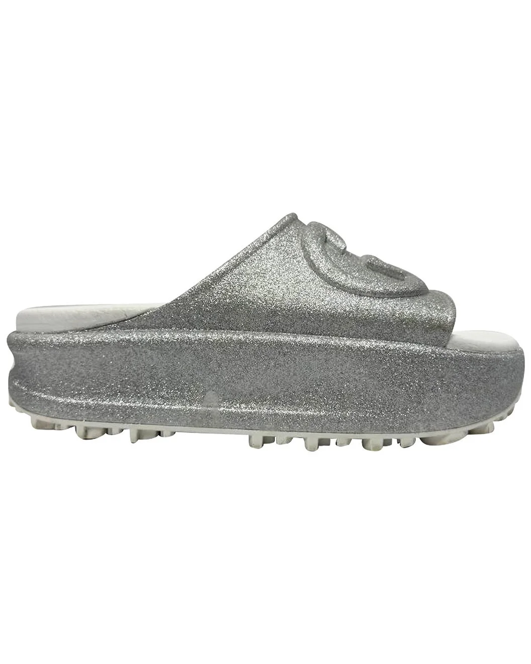 - About the brand: Eclectic and coveted. Italian luxury redefined. - This is an authentic, pre-loved piece. This item is in very good condition and shows light signs of wear. This item shows lightly used but very well maintained, may show minor signs of wear, scratches , worn corners, minor interior wear. - For more information on condition, please see our condition guide at the bottom - Color/material: metallic rubber - Design details: Step into effortless glamour with the Gucci GG Logo Glittered Slide Sandals in Silver Rubber €” where iconic luxury meets eye-catching sparkle. These chic slides elevate any casual look, perfect for adding a touch of shine to your weekend outfit. Styling tip: Pair them with cropped denim and a sleek white blouse for an effortlessly polished vibe that highlights the sandals €™ dazzling silver glitter. - Accompanied by box - 9.84in insole length - The Pre-Loved Condition Guide - Our products are 100% genuine. In some cases we purchase merchandise from trusted independent suppliers and not directly from the brand owner. In all cases we stand by the authenticity of every product sold on our site.