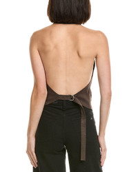 - About the brand: Easy and edgy wardrobe essentials. - Halter Linen-Blend Vest in espresso with open back and adjustable shoulder straps - Approximately 24in from shoulder to hem - Model is 5'9 and is wearing a size 4. Measurements may vary slightly by size. - Button front - 52% linen, 46% viscose, 2% elastane - Dry clean only - Imported - Our products are 100% genuine. In some cases we purchase merchandise from trusted independent suppliers and not directly from the brand owner. In all cases we stand by the authenticity of every product sold on our site.