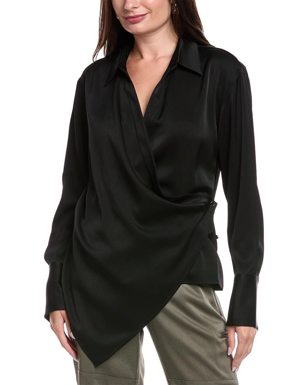 - About the brand: Easy and edgy wardrobe essentials. - Wrap Relax Shirt in black - Approximately 27in from shoulder to hem - Model is 5'9.5 and is wearing a size small. Measurements may vary slightly by size. - Button wrap closure - 82% triacetate, 18% polyester - Dry clean only - Imported - Our products are 100% genuine. In some cases we purchase merchandise from trusted independent suppliers and not directly from the brand owner. In all cases we stand by the authenticity of every product sold on our site.