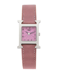 - Guaranteed for Christmas. Delivery restrictions apply. - See disclaimer. - About the brand: An unmistakable luxury icon. - Circa 2000s - This is an authentic, pre-loved Hermes piece. It's possible that there may be some gentle wear. - Quartz movement - Pink leather strap - Pin buckle clasp - Stainless Steel bezel - Stainless Steel case - Sapphire crystal - Push down crown - Pink dial - Date display - Case: 21mm - Bracelet/strap: 15mm wide x 7in long - Manufacturer's limited warranty - Independent Appraisal and Generic Box - The Watch Size Guide