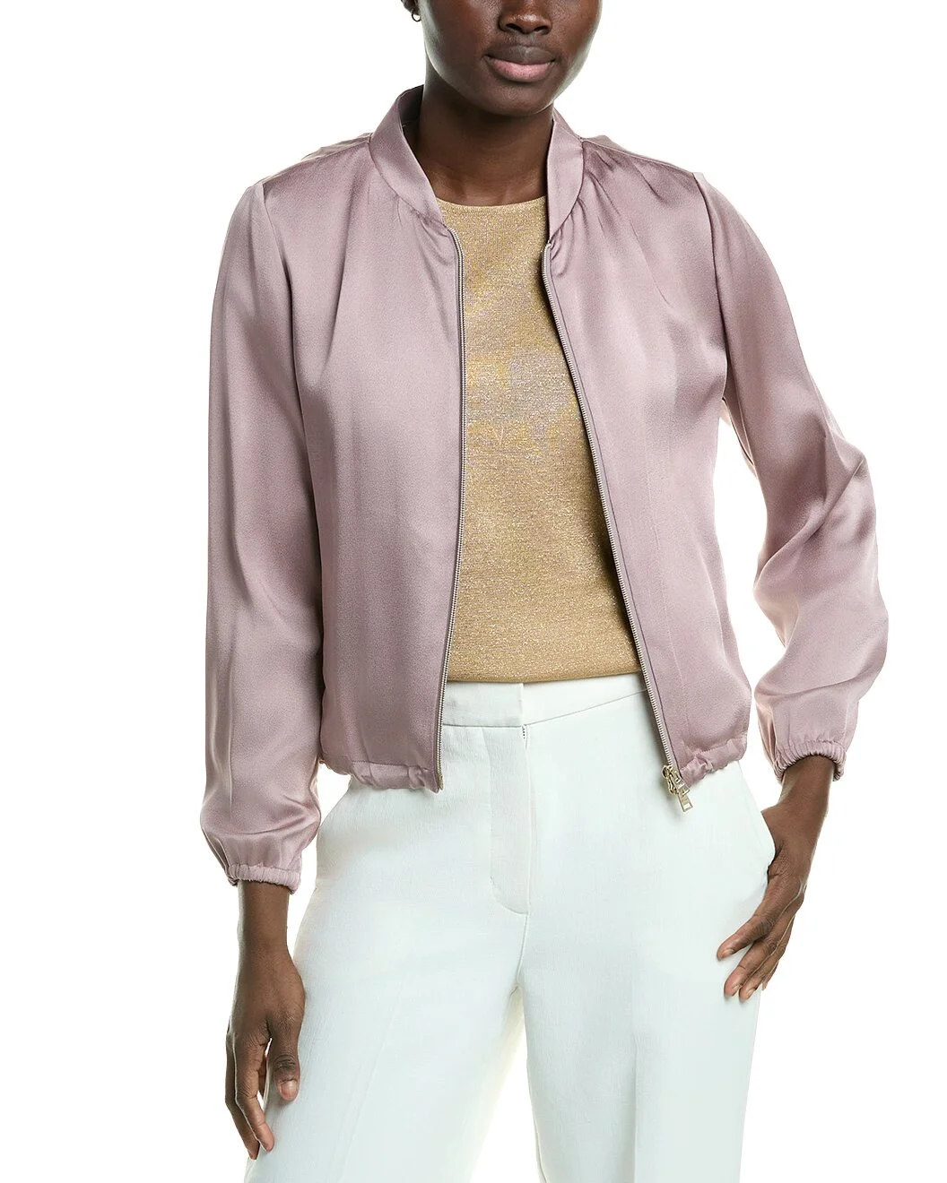 - About the brand: Simple, refined luxury outerwear. - Satin Bomber Jacket in lilac with two zippered front pockets and drawcord hem - Approximately 22in from shoulder to hem - Model is 5'10 and is wearing a size 40. Measurements may vary slightly by size. - Zipper closure - Shell: 71% acetate, 29% viscose - Lining: 65% acetate, 35% polyester - Machine wash - Made in Italy - Our products are 100% genuine.  In some cases we purchase merchandise from trusted independent suppliers and not directly from the brand owner.  In all cases we stand by the authenticity of every product sold on our site.