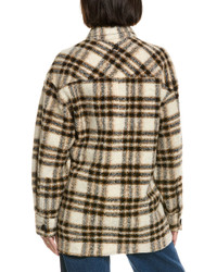 - Please note: Size selections are European. For US conversions, please reference the size chart. - Color/pattern: ecru plaid - Approximately 32in from shoulder to hem - Model is 5'9 and is wearing a size 38. Measurements may vary slightly by size. - Design details: dual chest pockets and front pockets - Button front - 63% wool, 33% polyester, 4% other fibers - Lining: 100% cotton - Dry clean only - Imported