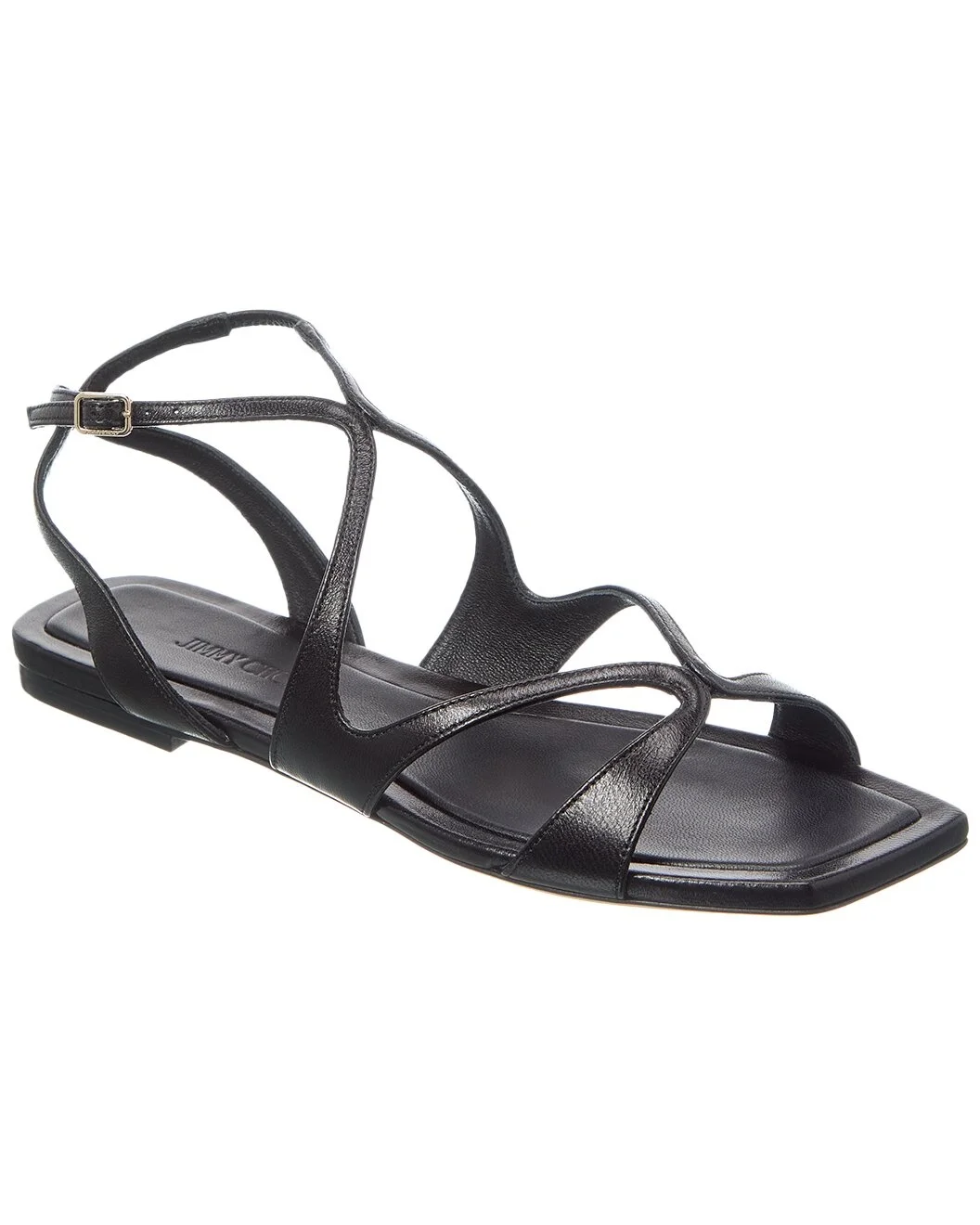 - About the brand: Born in London in the early 90's, Jimmy Choo was one of the first luxury brands to bring shoes and handbags to the red carpet. A playful sense of glamour and exceptional Italian craftsmanship separate Jimmy Choo from the rest, in Hollywood and beyond. - Please note: Size selections are European. For US conversions, please reference size chart. - Based on feedback from Members, this brand typically runs small. We suggest sizing up a half size for most styles. - Made in Italy - Ayla Leather Sandal in black leather and gold-tone hardware with strappy design - Adjustable ankle strap with buckle closure - Lightly padded leather insole - Smooth leather sole - Our products are 100% genuine. In some cases we purchase merchandise from trusted independent suppliers and not directly from the brand owner. In all cases we stand by the authenticity of every product sold on our site.
