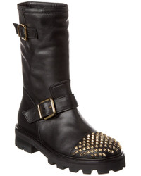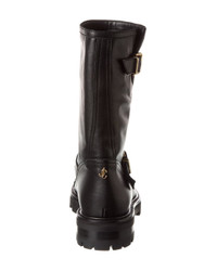 - About the brand: Born in London in the early 90's, Jimmy Choo was one of the first luxury brands to bring shoes and handbags to the red carpet. A playful sense of glamour and exceptional Italian craftsmanship separate Jimmy Choo from the rest, in Hollywood and beyond. - Please note: Size selections are European. For US conversions, please reference size chart. - Based on feedback from Members, this brand typically runs small. We suggest sizing up a half size for most styles. - Made in Italy - Biker II Leather Boot in black leather and gold-tone hardware with stud accents - Buckle closure - Lightly padded leather insole - Rubber lug sole - 1.5in heel - 0.9in platform - 9.3in shaft - 13in boot circumference - Please note: All measurements are approximate and were taken from a size 37; slight variations may occur. - The Boot Size Guide - Our products are 100% genuine. In some cases we purchase merchandise from trusted independent suppliers and not directly from the brand owner. In all cases we stand by the authenticity of every product sold on our site.
