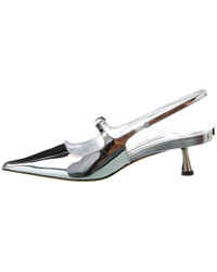 - About the brand: Born in London in the early 90's, Jimmy Choo was one of the first luxury brands to bring shoes and handbags to the red carpet. A playful sense of glamour and exceptional Italian craftsmanship separate Jimmy Choo from the rest, in Hollywood and beyond. - Please note: Size selections are European. For US conversions, please reference size chart. - Based on feedback from Members, this brand typically runs small. We suggest sizing up a half size for most styles. - Made in Italy - Didi 45 Leather Slingback Pump in silver liquid metal leather and silver-tone hardware with pointy-toe - Buckle closure - Lightly padded leather insole - Smooth leather sole - 2in heel - Please note: All measurements are approximate and were taken from a size 37; slight variations may occur. - Our products are 100% genuine. In some cases we purchase merchandise from trusted independent suppliers and not directly from the brand owner. In all cases we stand by the authenticity of every product sold on our site.