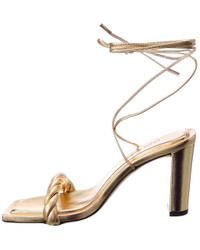 - About the brand: Born in London in the early 90's, Jimmy Choo was one of the first luxury brands to bring shoes and handbags to the red carpet. A playful sense of glamour and exceptional Italian craftsmanship separate Jimmy Choo from the rest, in Hollywood and beyond. - Please note: Size selections are European. For US conversions, please reference size chart. - Based on feedback from Members, this brand typically runs small. We suggest sizing up a half size for most styles. - Made in Italy - Diosa 85 Leather Sandal in gold leather with braided strap - Self-tie ankle wrap closure - Lightly padded leather insole - Smooth leather sole - 3.5in heel - Please note: All measurements are approximate and were taken from a size 37; slight variations may occur. - Our products are 100% genuine. In some cases we purchase merchandise from trusted independent suppliers and not directly from the brand owner. In all cases we stand by the authenticity of every product sold on our site.