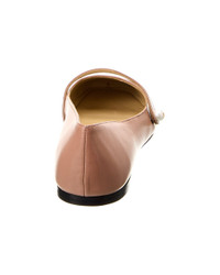 Elisa embellished patent-trimmed leather Mary Jane flats Beige