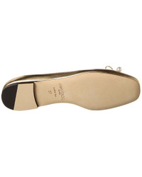 Elme Flat Gold Metallic Nappa Leather Flats with Pearl Embellishment