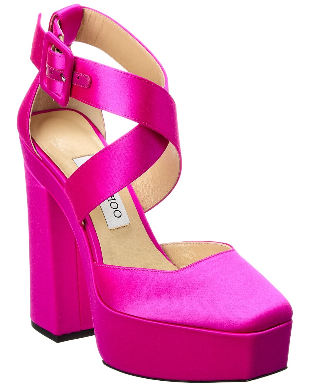 - About the brand: Born in London in the early 90's, Jimmy Choo was one of the first luxury brands to bring shoes and handbags to the red carpet. A playful sense of glamour and exceptional Italian craftsmanship separate Jimmy Choo from the rest, in Hollywood and beyond. - Please note: Size selections are European. For US conversions, please reference size chart. - Based on feedback from Members, this brand typically runs small. We suggest sizing up a half size for most styles. - Made in Italy - Gian 140 Leather Pump in fuchsia leather and black hardware with closed toe and criss-cross strap - Adjustable ankle strap with buckle closure - Leather insole - Leather sole - 5.5in heel - 1.5in platform - Our products are 100% genuine. In some cases we purchase merchandise from trusted independent suppliers and not directly from the brand owner. In all cases we stand by the authenticity of every product sold on our site.