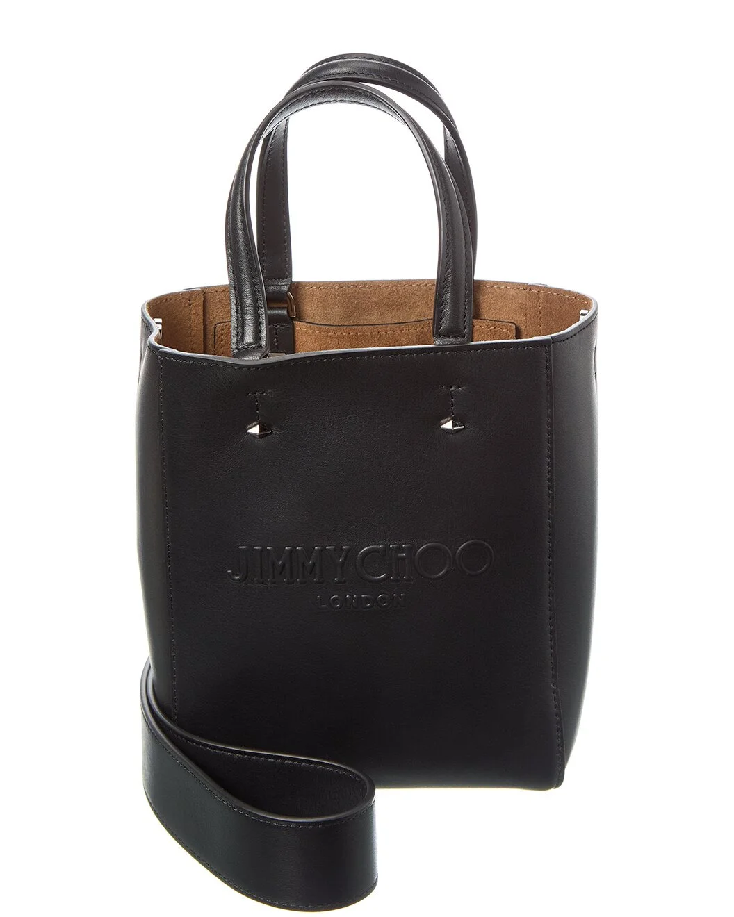 - About the brand: Born in London in the early 90's, Jimmy Choo was one of the first luxury brands to bring shoes and handbags to the red carpet. A playful sense of glamour and exceptional Italian craftsmanship separate Jimmy Choo from the rest, in Hollywood and beyond. - Made in Italy - Lenny N/S Small Leather Tote in black leather and silver-tone hardware - Interior design details: suede lining, interior pocket - Measures 6.6in wide x 7.8in high x 4in deep - Top handles drop 4.5in - Adjustable and removable shoulder strap drops 18in - Open top - Please note: All measurements were taken by hand and are approximate; slight variations may occur. - Our products are 100% genuine. In some cases we purchase merchandise from trusted independent suppliers and not directly from the brand owner. In all cases we stand by the authenticity of every product sold on our site.