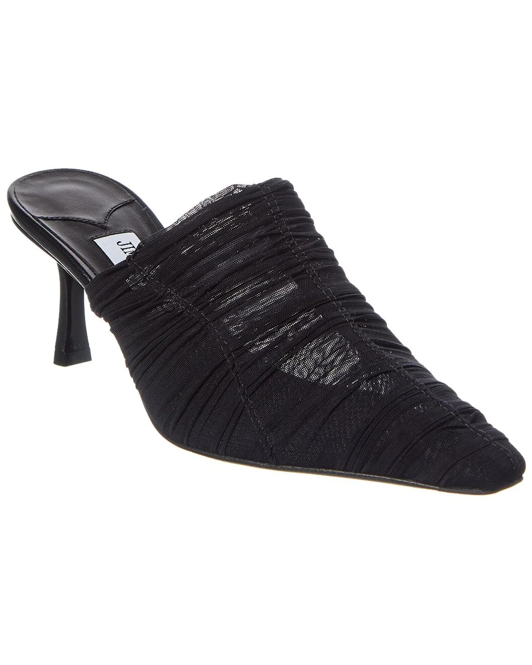 - About the brand: Born in London in the early 90's, Jimmy Choo was one of the first luxury brands to bring shoes and handbags to the red carpet. A playful sense of glamour and exceptional Italian craftsmanship separate Jimmy Choo from the rest, in Hollywood and beyond. - Please note: Size selections are European. For US conversions, please reference size chart. - Based on feedback from Members, this brand typically runs small. We suggest sizing up a half size for most styles. - Made in Italy - Lotta 65 Ruched Tulle Mule in black ruched tulle with open back - Lightly padded leather insole - Smooth leather sole - 2.5in heel - Please note: All measurements are approximate and were taken from a size 37; slight variations may occur. - Our products are 100% genuine. In some cases we purchase merchandise from trusted independent suppliers and not directly from the brand owner. In all cases we stand by the authenticity of every product sold on our site.