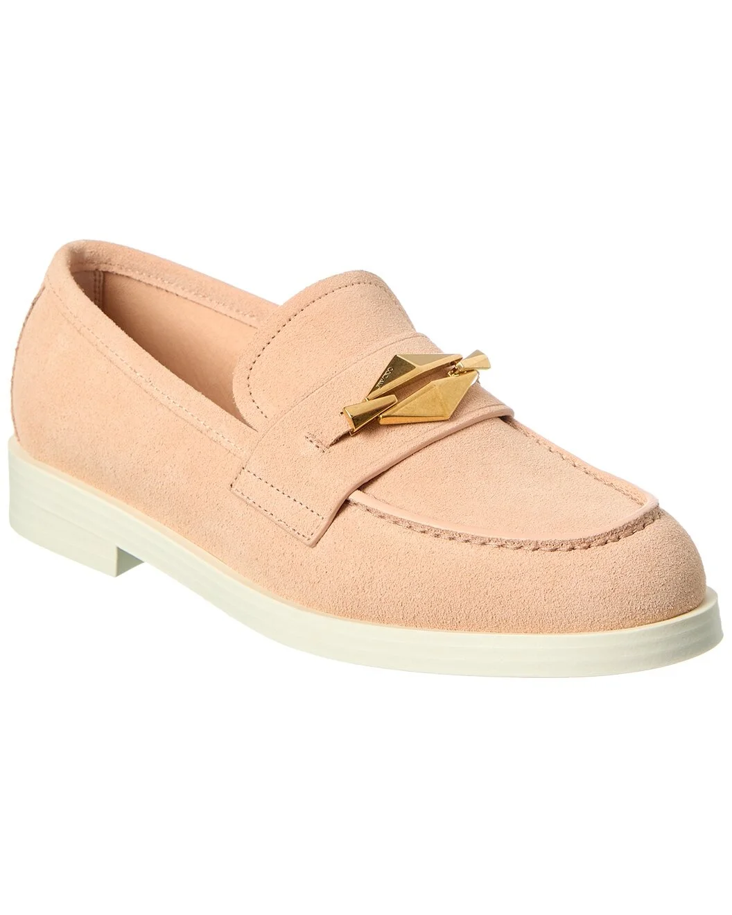 - About the brand: Born in London in the early 90's, Jimmy Choo was one of the first luxury brands to bring shoes and handbags to the red carpet. A playful sense of glamour and exceptional Italian craftsmanship separate Jimmy Choo from the rest, in Hollywood and beyond. - Please note: Size selections are European. For US conversions, please reference size chart. - Based on feedback from Members, this brand typically runs small. We suggest sizing up a half size for most styles. - Made in Italy - Maddie Diamond Suede Loafer in macaron suede and gold-tone hardware - Lightly padded leather insole - Rubber sole with traction - 1.25in heel - Please note: All measurements are approximate and were taken from a size 37; slight variations may occur. - Our products are 100% genuine. In some cases we purchase merchandise from trusted independent suppliers and not directly from the brand owner. In all cases we stand by the authenticity of every product sold on our site.