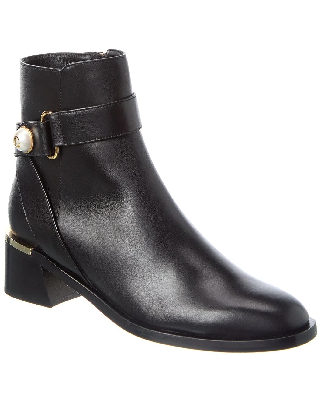 - About the brand: Born in London in the early 90's, Jimmy Choo was one of the first luxury brands to bring shoes and handbags to the red carpet. A playful sense of glamour and exceptional Italian craftsmanship separate Jimmy Choo from the rest, in Hollywood and beyond. - Based on feedback from Members, this brand typically runs small. We suggest sizing up a half size for most styles. - Made in Italy - Noor 45 Leather Boot in black leather and gold-tone hardware with logo pearl strap - Inner side zip-up closure - Lightly padded leather insole - Smooth leather sole - 2in heel - 5.5in shaft - 10in boot circumference - Please note: All measurements are approximate and were taken from a size 37; slight variations may occur. - The Boot Size Guide - Our products are 100% genuine. In some cases we purchase merchandise from trusted independent suppliers and not directly from the brand owner. In all cases we stand by the authenticity of every product sold on our site.