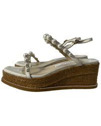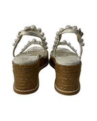 Amatuus 60 Latte Nappa Latte Wedge Sandals with Pearls
