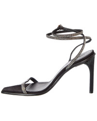 - Please note: Size selections are European. For US conversions, please reference size chart. - Made in Italy - Color/material: black suede and leather - Design details: silver-tone hardware, crystal embellishments and fluted heel - Adjustable ankle strap with buckle closure - Lightly padded leather insole - Smooth leather sole - 4in heel - Please note: All measurements are approximate and were taken from a size 37; slight variations may occur. - Our products are 100% genuine. In some cases we purchase merchandise from trusted independent suppliers and not directly from the brand owner. In all cases we stand by the authenticity of every product sold on our site.
